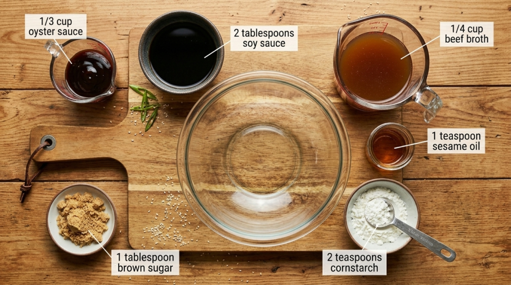 3. Make the sauce: Combine all sauce ingredients in a bowl, ensuring cornstarch is fully dissolved with no lumps.