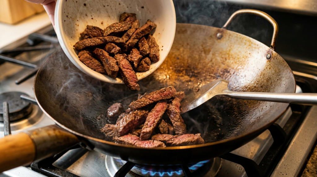 4. Heat your wok: Place your wok or skillet over high heat until it’s smoking hot. This is crucial for chinese beef recipes to achieve that authentic wok hei flavor similar to a mongolian beef recipe.