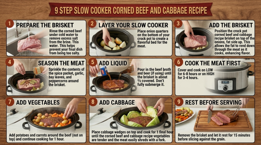Step-by-step Crock Pot Corned Beef and Cabbage recipe for easy cooking