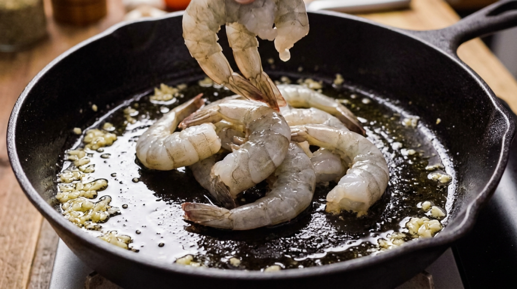 4. Cook shrimp for 1-2 minutes per side until they turn pink and opaque. Remove from the pan and set aside.