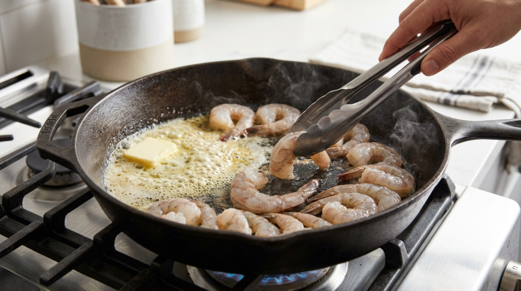 3. Heat 2 tablespoons of butter in a large skillet over medium-high heat. When the butter starts to foam, add the shrimp in a single layer, being careful not to overcrowd the pan.