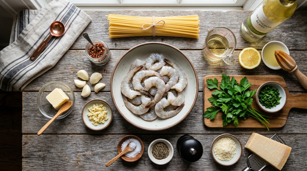 2. While pasta cooks, prepare the shrimp and sauce. Pat the shrimp dry with paper towels to ensure they sear properly rather than steam.