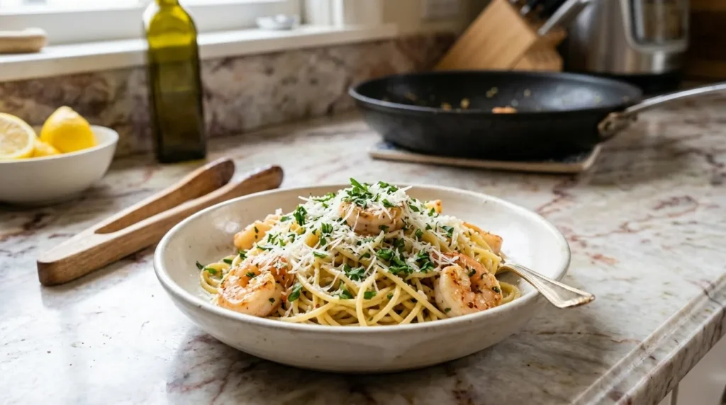 easy shrimp and scallop pasta recipe with garlic butter sauce