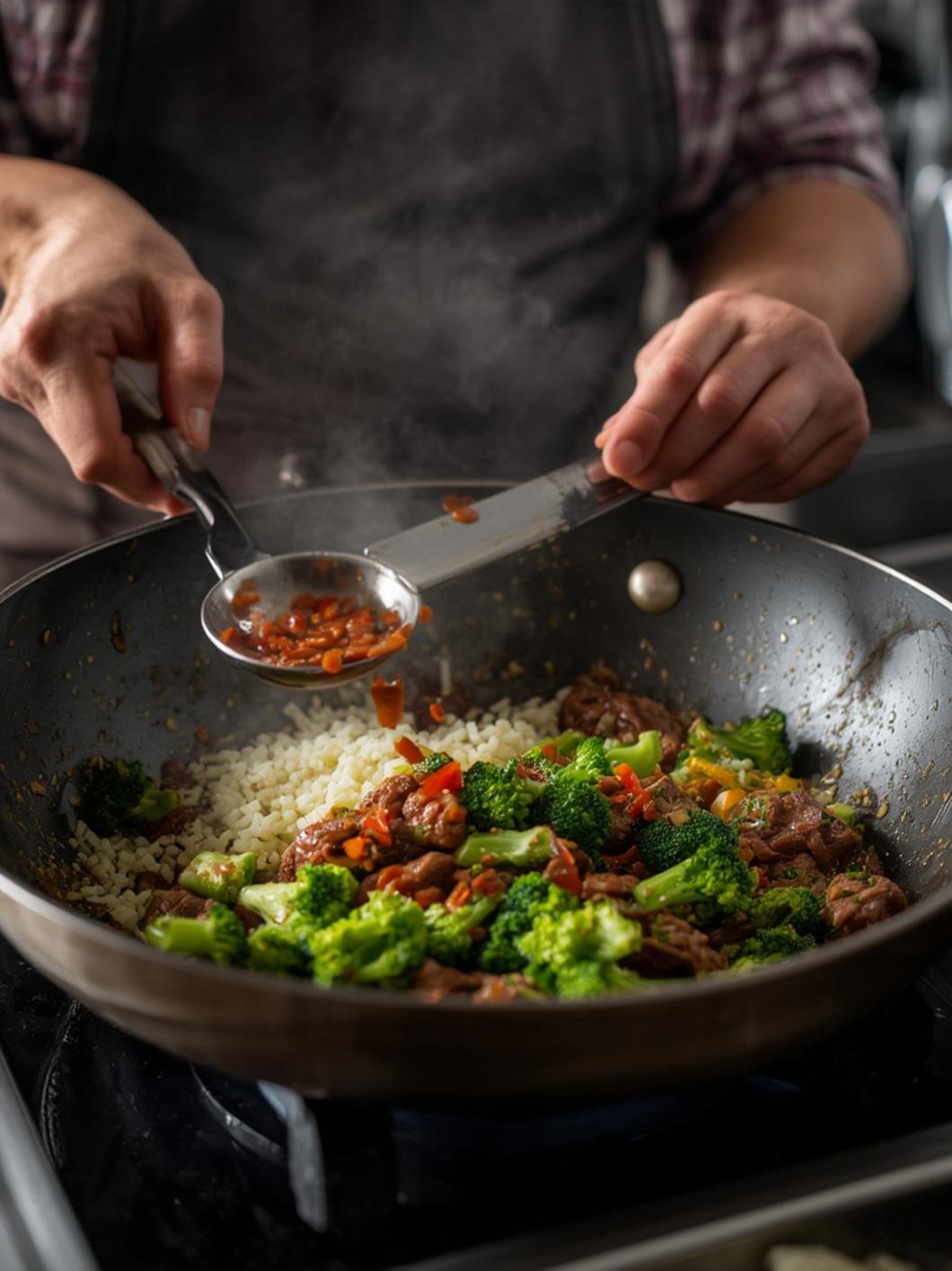 2. Make the sauce: In a small bowl, whisk together beef broth, soy sauce, brown sugar, oyster sauce (if using), and sesame oil. In another small bowl, mix cornstarch with water to create a slurry.