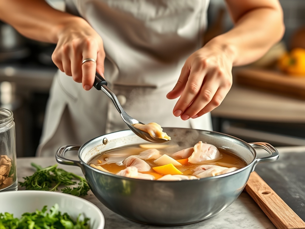 6. Simmer patiently: Maintain a gentle simmer for 3-4 hours for standard broth or up to 24 hours if you’re making how to make chicken broth with maximum bone nutrient extraction.