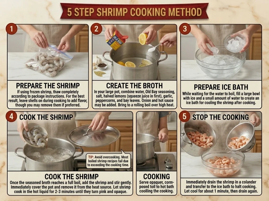 1. Prepare the shrimp: If using frozen shrimp, thaw completely according to package instructions. For the best boiled shrimp results, leave shells on during cooking (they add flavor), though you can remove them if preferred.