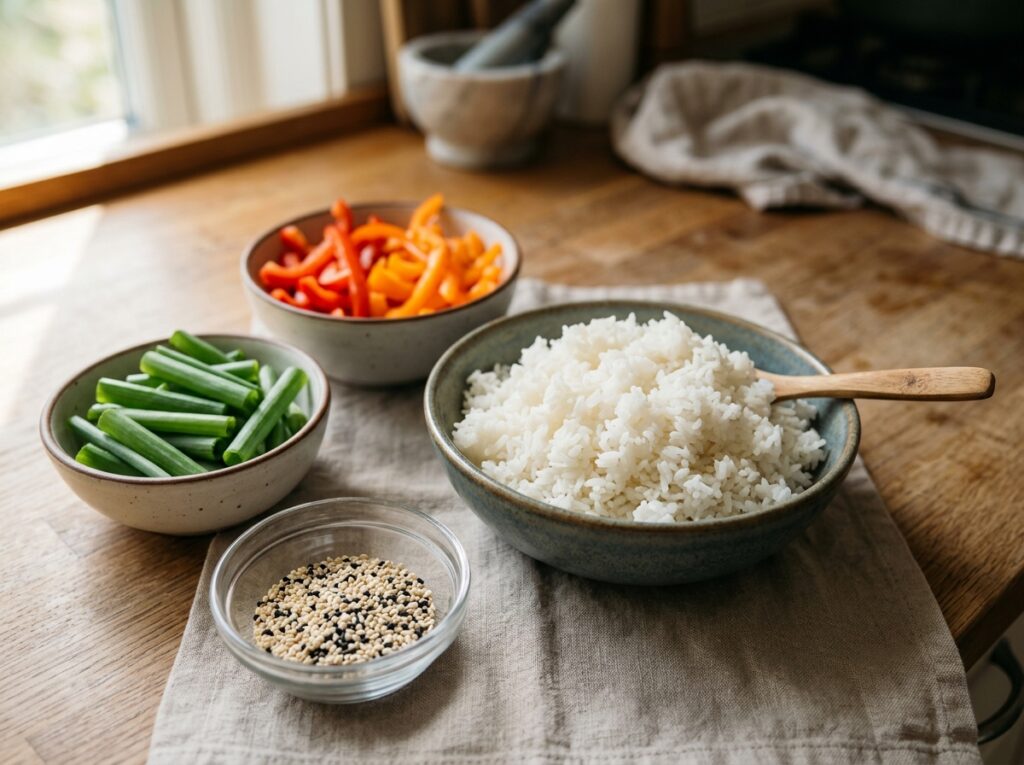 – Steamed rice for serving